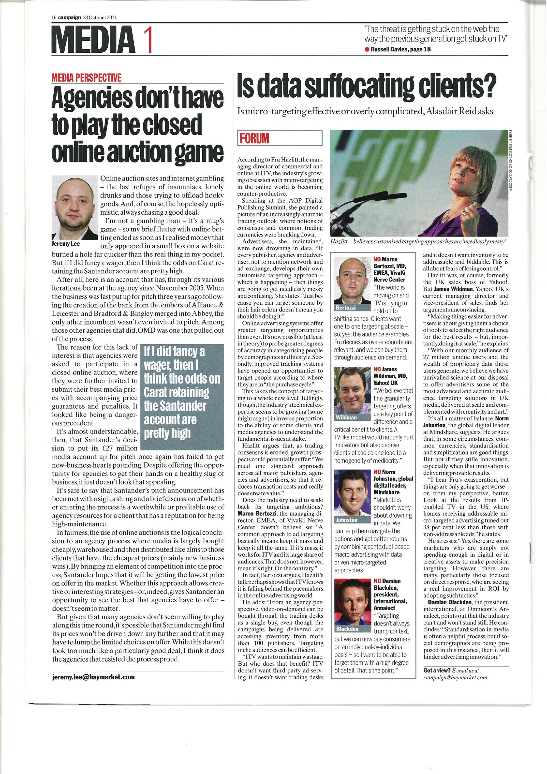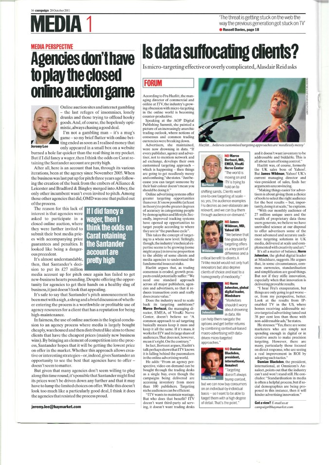 Marco Bertozzi in Campaign Magazine Forum section 26.10.11