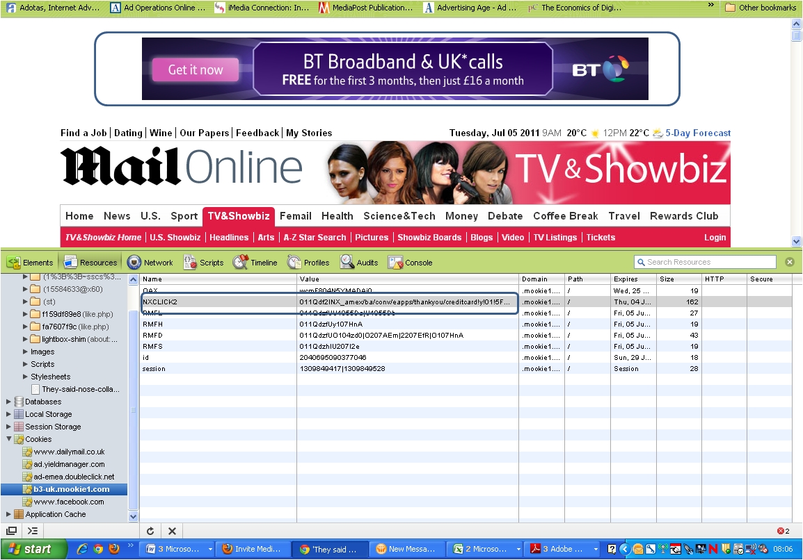 Co-mingling of client data is an old argument; some of which believe to be mythical (one network told me it was not technically possible) whilst some believe it’s still an operational practice today. Either way it’s a practice that carries many sensitivities. An example is outlined below. I recently applied for an AMEX BA Card. I have since been served ads for BT following some recent site visitation. Nothing wrong with that. However what I found odd was the cookie information, that is being directly or indirectly leveraged, includes details of the Amex transaction. I may be wide of the mark of here and as the technology is based on exclusion and inclusion pixelling, maybe it ‘needs’ to know I am an AMEX customer so the rules can be defined to say “dont serve AMEX to this user, serve another ad from the pool”. Or it could be simply using the data they have on me to enrich the targeting parameters of the BT campaign?