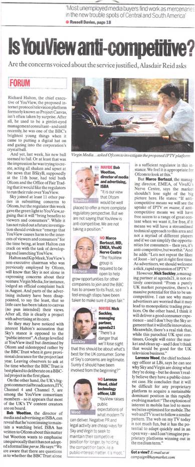 Its not often I sit on the fence or become a middle man, but I believe that we could all learn something from each other and one is not better than the other. The biggest crime is that we don’t admit failings and don’t admit that we could learn from one another. As more TV becomes localised, one important lesson to learn from digital is to not let standards drop on creative. TV advertising on the whole is of the highest standards but as a more local offering creeps in with Sky openly encouraging local businesses to come into the TV market place, we are in danger of having a US experience with men standing outside their local garages offering this weeks best deals. TV must keep creative of the highest standards.