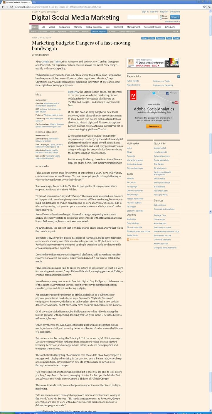 Stack Wars is back in October with Yahoo buying Brightroll, a sensible move as you consider the purchase of Adapt by AOL and Facebook of Liverail a couple of months earlier. We now see them all with video offerings, display offerings, adserving and performance products and suites of data. I think we are about at the right time to see them kick off. Atlas has hired a key guy in Damian Burns to lead their offering, once he has his feet under the table I think we will see some real movement.